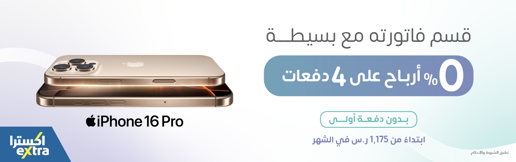 خذ آيفون 16 بـ0% أرباح على 6 دفعات في اكسترا