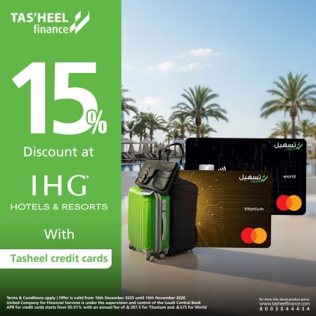 Use your Tasheel credit cards when booking your stay at any IHG resorts or hotels and enjoy the discount